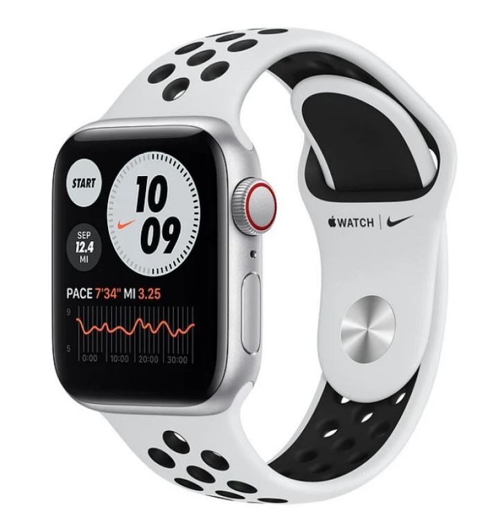 Apple Watch SE GPS/Cellular 40mm Silver Aluminum Case/Nike Sports Platinum Pure And Black Strap