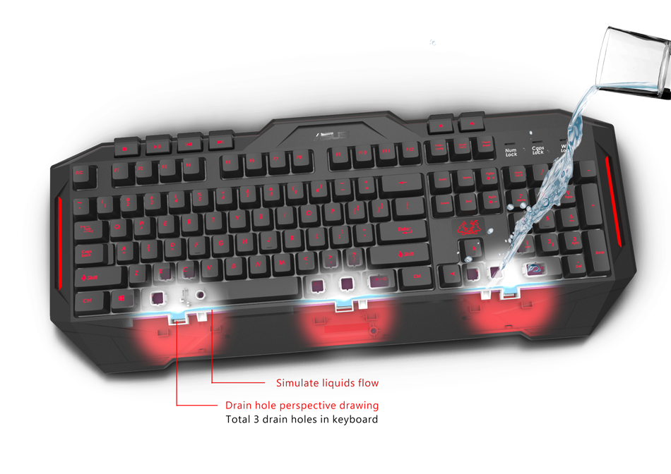 The Gaming Cerberus keyboard design incorporates a splash-proof design to avoid fluid spills problems. The three drainage holes prevent the liquids from stagnating between the keys and facilitate a simpler cleaning to return to your games as soon as possible.