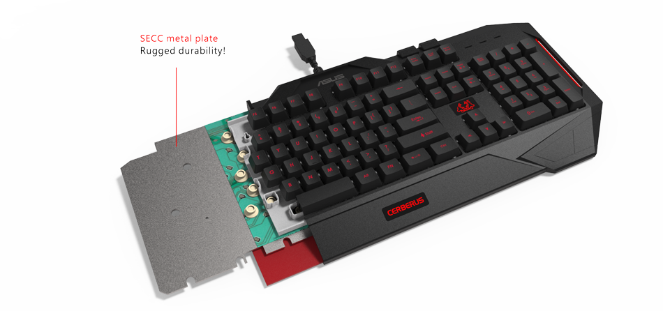 SECC steel forged, the inside sheet of the Gaming Cerberus keyboard improves the structural resistance of the product to resist the rigors associated with the non-truce gaming.