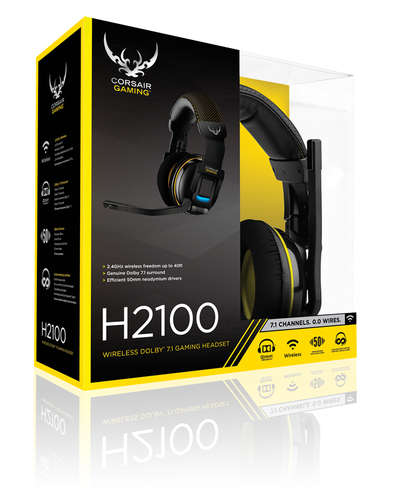 Corsair H2100. Use with: PC / Games. Headset Type: Binaurale, Use Style: Diadema, Product Color: Black. Device interface: USB, Device connectivity: Wireless, Band frequency: 2.4 GHz. Audits: Supraaural, Headset frequency: 20 - 20000 Hz, Obstruction: 32 Ohmio. microphone frequency: 100 - 10000 Hz, microphone sensitivity: -37 Db, Microphone, output impedance: 2200 Ohmio