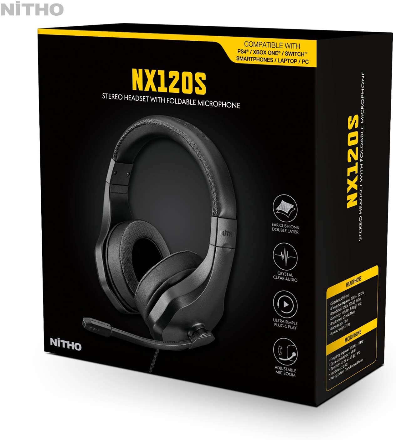 The NX120S Nitho headphones include 40 mm controllers, with high performance magnets that provide high quality sound and an omnidirectional and high sensitivity adaptive arm phone &o. The pads for the two or more comfort dise ñ ed to cover all the ears, manufactured with lightweight materials, ideal for extended play sessions.