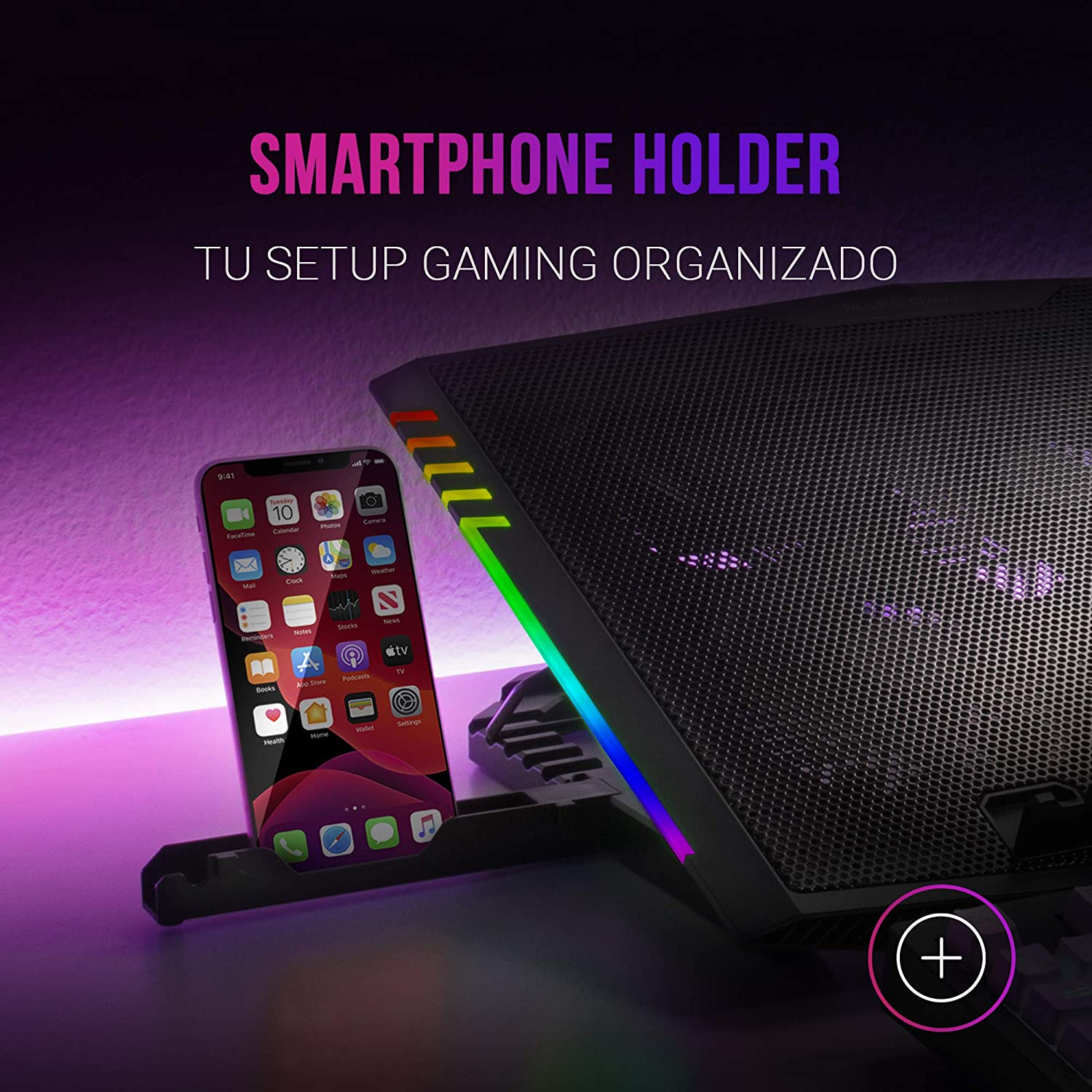 The MNBC5 cooling base has an additional support for mobile &o, a ratio of additional comfort when working or during your gaming games. Place your smartphone on the support and send all your devices organized and within your reach.