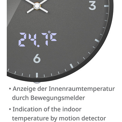 - The display of temperature is activated by the integrated motion sensor