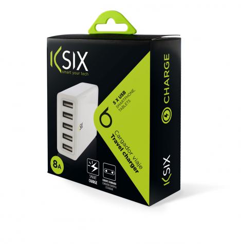 CARGADOR RED 5 USB KSIX 8A BLANCO
