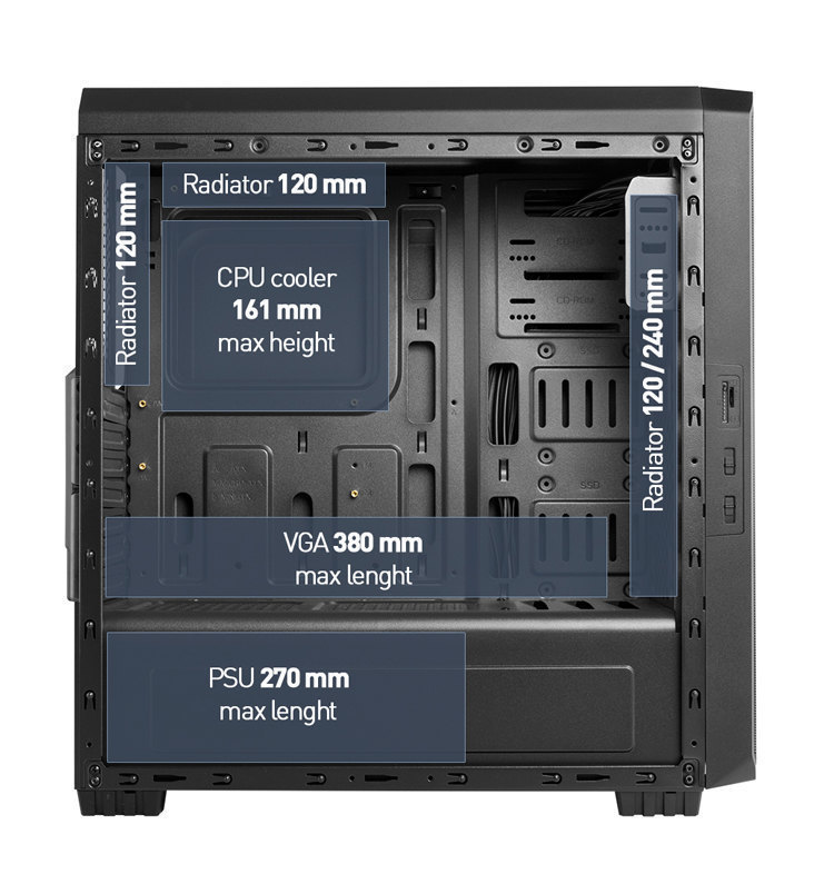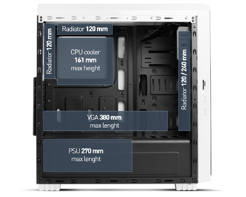 Despite being the small one in the series, Hummer ZS Zero has space to house a high performance equipment, as inside it is possible to install a long graph, up to 380 mm and coolers of a maximum height of 161 mm.