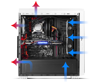 Ventilation system (optional) • Frontal: 2x 120 mm (1 if 5.25 "units are disabled)