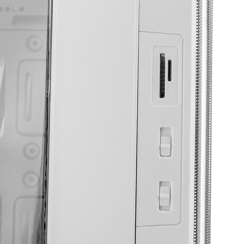 The Hummer ZS Zero front panel has two USB 2.0 ports and two USB 3.0 ports, as well as audio connections. On the side panel we find, on the one hand, two speed controllers to control up to 4 fans, adjustable in 3 positions: LOW / STOP / HIGH, and on the other hand, SD and Micro SD card reader, which facilitates accessibility to the connections of all our external devices.