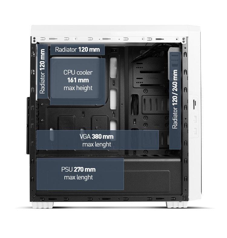 Despite being the small one in the series, Hummer ZS Zero has space to house a high performance equipment, as inside it is possible to install a long graph, up to 380 mm and coolers of a maximum height of 161 mm.