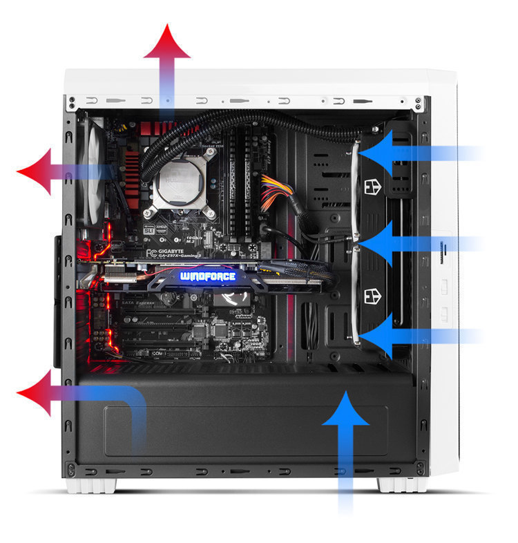 Hummer ZS Zero has an excellent ventilation system, which ensures effective air flow inside the equipment. It has two 120 mm fans, one on the front and one on the back. In addition, it offers the possibility to install three fans more than 120 mm; two on the front and one on the top.