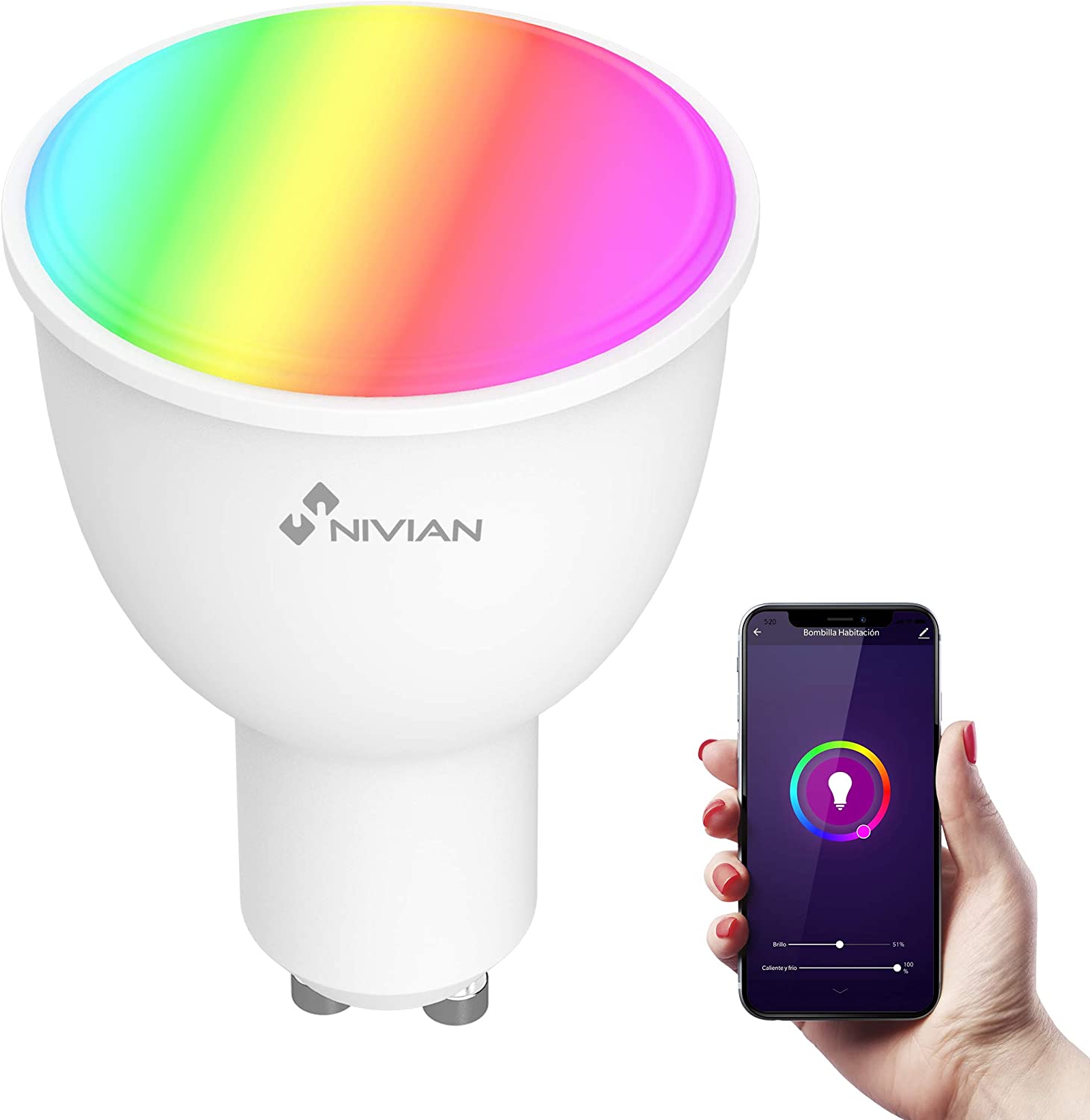 The intelligent bulb has the GU10 connector, very used in all homes to be able to install in most sites
