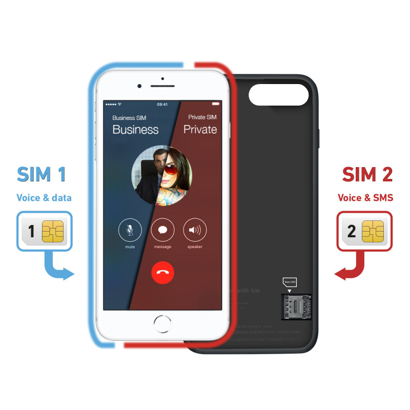 Second SIM Case is the ideal accessory for you if you want to enjoy two SIM cards simultaneously on your iPhone 8 / 7 / 6s / 6.