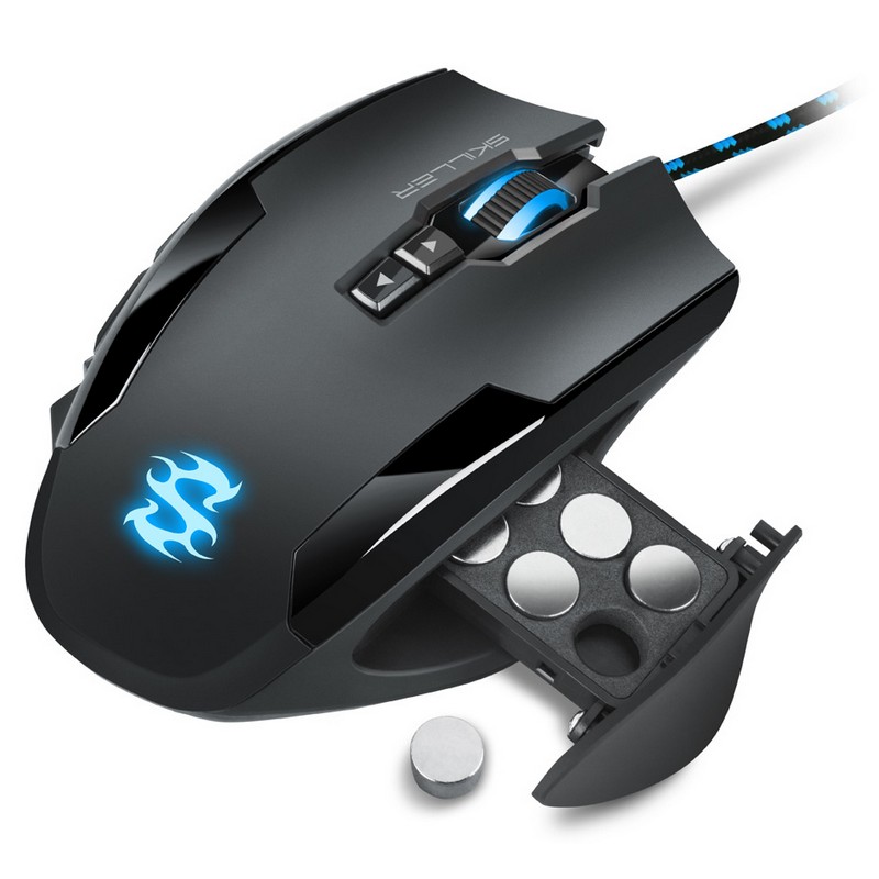 Some prefer the mouse as light as a pen, some as heavy as lead. The SGM1 skiller can be at once. With six pesos, each weighs four grams each, the weight of the SGM1 can be adjusted by seven increases from 106 to 130 grams. No tools required. Simply pull back the locking mechanism with spring at the bottom to remove the weight tuning tray.