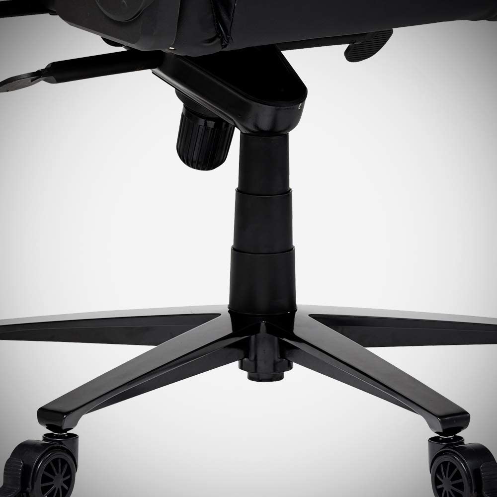 The Black Jetblack Gaming Chair features top-quality PU leather upholstery with hand-made seams in the seat and the backup joint, which is padded for comfort. The multi-functional tilting mechanism gives you full control of the seat and it is possible to block it in any position.
