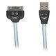 Compatible cable bright recharged by any Apple device with charging socket 30 pin (same as the iPhone 3, 3GS, iPhone 4 or iPad). Once you plug the cable and see lights at random and varying its color every few seconds.