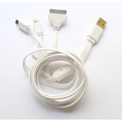 If you remain without USB ports on the computer to recharge your daily gadgets, this cable will become the ideal accessory to solve your problem. On the one hand includes a standard USB jack for PC or any power outlet plug USB, and the other has a Lightning plug (used in iPhone 5, iPad Mini or iTouch), a microUSB plug (for tablets and smartphones) and a 30-pin plug (iPod, iTouch, iPhone 2G/3G/4/4S).