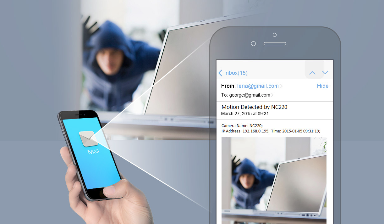 The NC220 can be configured to send immediate notifications by email or FTP automatically when movement or sound is detected, allowing you to stay aware of what is happening in the stay.